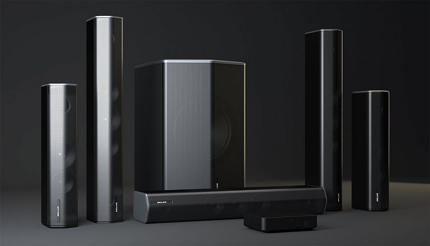 Система работает с аудиопередатчиком CineHub. Это первый комплект акустики, одновременно сертифицированный THX и WiSA. CineHub поддерживает форматы Dolby Audio, DTS Digital Surround и работает с несжатым PCM. Кроме того, разработчики оснастили хаб оптическим и аналоговым входами, разъемом HDMI (eARC) и модулем Bluetooth. WiSA позволяет передавать сигнал 24 бит / 96 кГц, обеспечивает низкую задержку и практически моментальную синхронизацию, на которую уходит менее 1 мс. В состав комплекта, помимо хаба, входит сабвуфер и пять колонок: три стройных вытянутых – для центрального и фронтальных каналов, две размером поменьше – для тыловых. Система совместима со всеми сертифицированными передатчиками WiSA, а также с устройствами WiSA Ready.